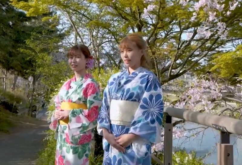 京都の観光名所白川で写真撮影を堪能した 2 人